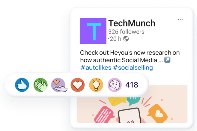 Heyou doesn’t work like a bot. While other tools get “punished” for bot activity, Heyou rides on your real activity, impacting positively on your posts’ visibility.