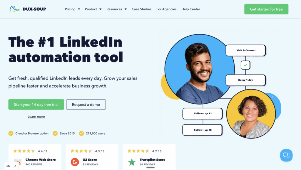 Dux-Soup – Chrome-based LinkedIn automation tool for visiting profiles, messaging, and managing campaigns.